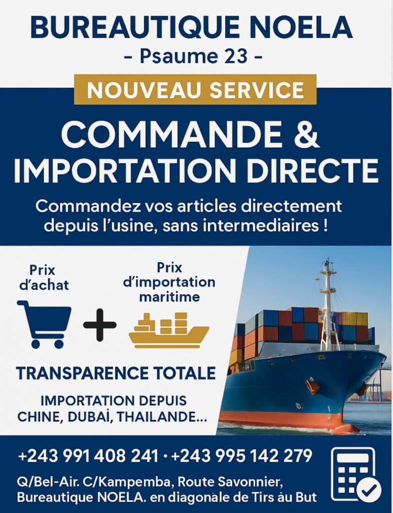 Ici, vous trouverez toutes les informations essentielles concernant l’achat, l’importation et la livraison de vos produits jusqu’en RDC.