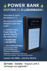 🔋 Power Bank ultra puissants disponibles à Bel-Air LUBUMBASHI, Pour servir toute la RDC ⚡